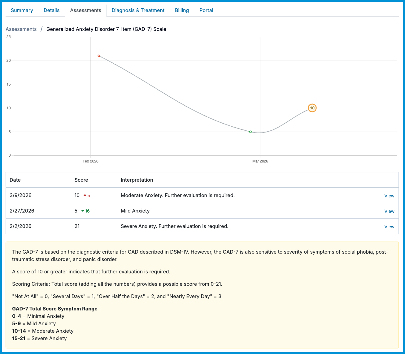 ℹ️ Clients never see how their assessments are scored. Scoring details are only visible to you in the client’s chart.