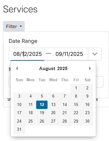 On the Insights Services page, you can filter the time frame to review the services that were used within a specified date range. Click the Filter button at the top left of the report.