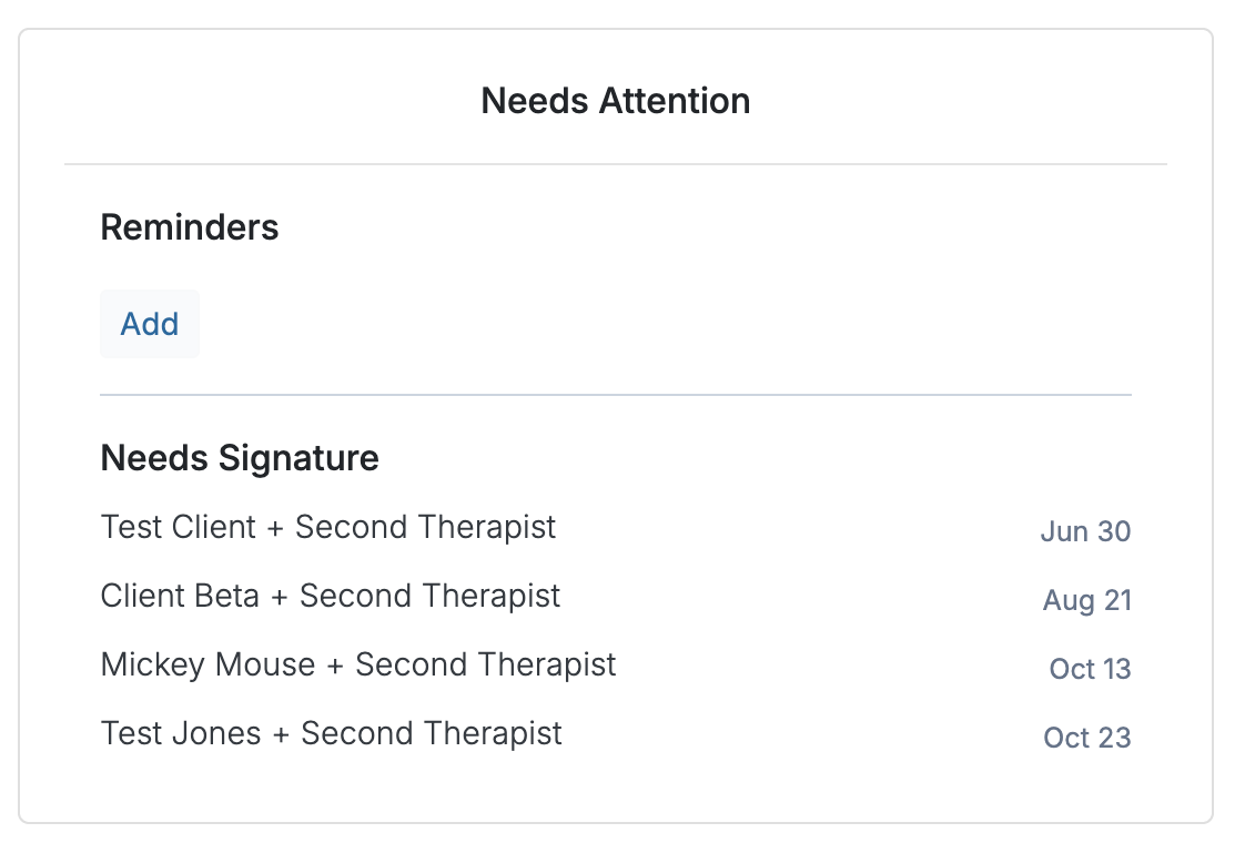 Once the supervisee re-signs the treatment plan, it will appear again in the supervisor's Home > Needs Attention > Needs Signature section.