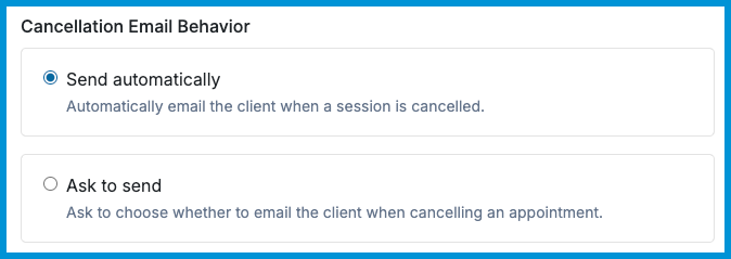 ℹ️ Cancellation emails are sent when a practitioner cancels a session. If a client cancels through the Client Portal, no cancellation email is sent.