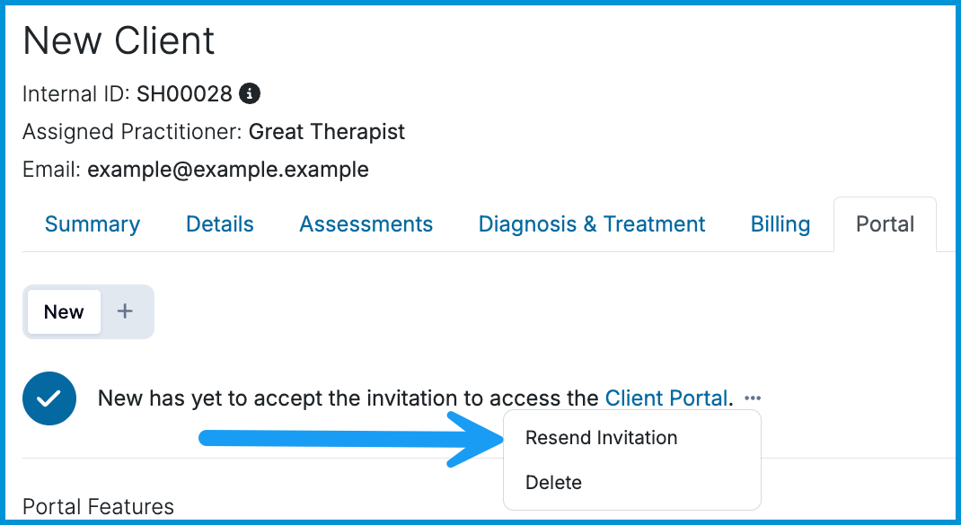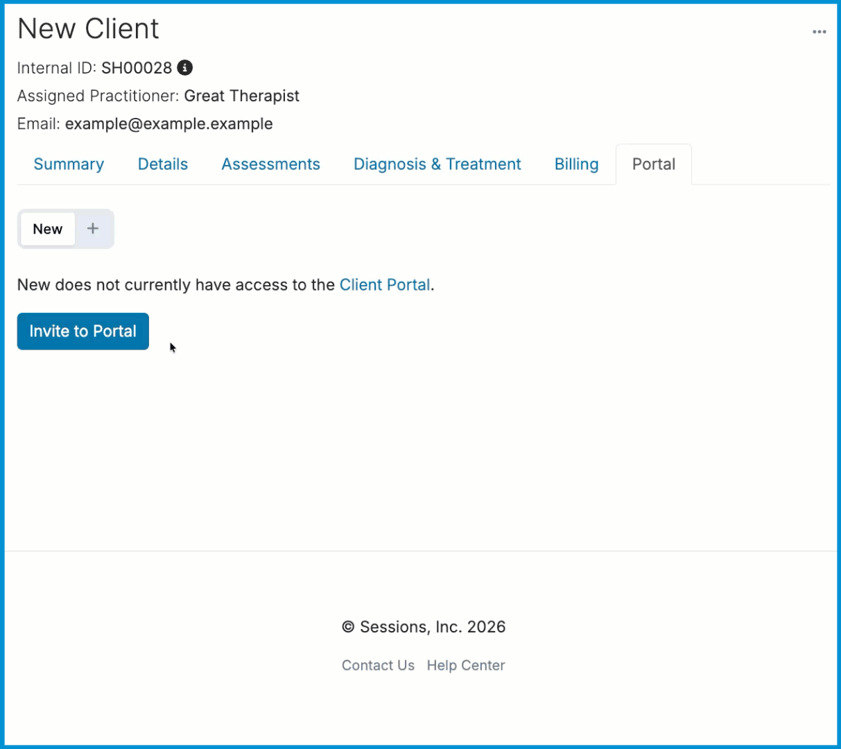 ℹ️ Clients sometimes overlook the portal invitation email. Ask them to search for Sessions Health or check their spam/junk folders.