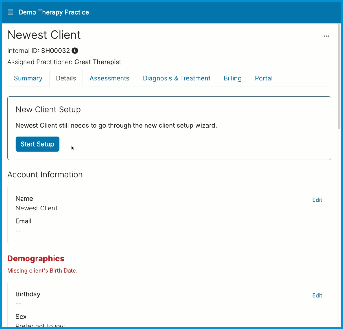 đź’ˇ Clients need a valid email address on file to access the Client Portal.